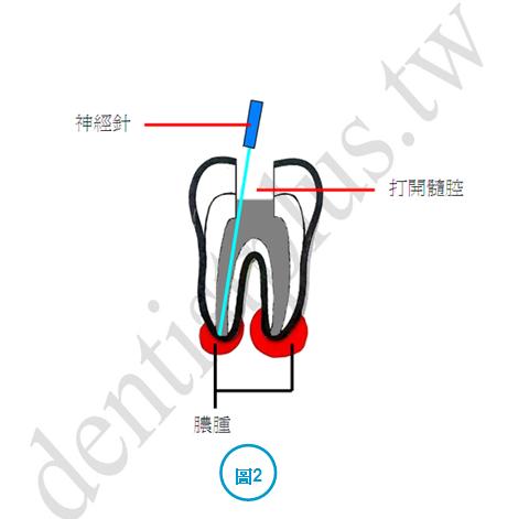 若重覆圖5步驟兩回合後,仍感腫脹不適,則判定感染過大,無法治療,只好拔除該牙。